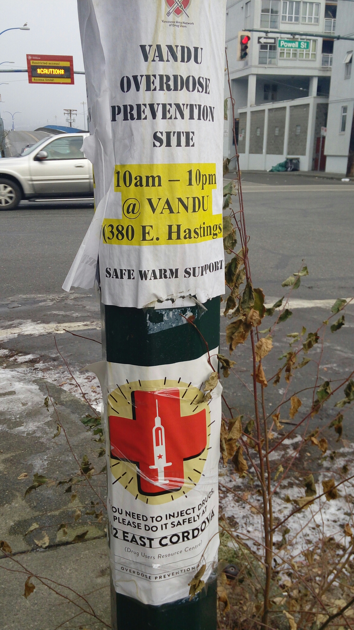 The city and the province is in crisis. One day before Christmas up to nine people died in a single day from suspected fentanyl overdoses in downtown Vancouver, with another four suspected fentanyl overdoses province wide. The emergency services are overwhelmed, with paramedics, fire services, and health centres attempting to save lives with naloxone kits. This morning, while in the Downtown Eastside, I saw evidence of the attempts people are making to combat this crisis, including safe injection sites.